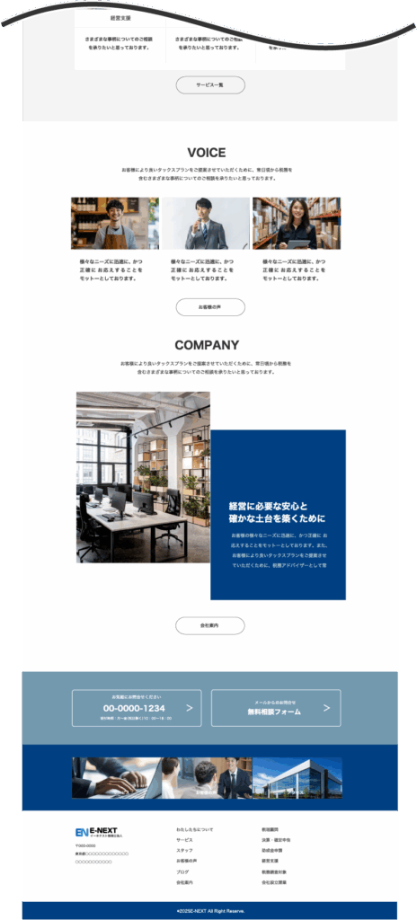 例えばトップページのデザインは、このような感じでわかりやすく制作します。