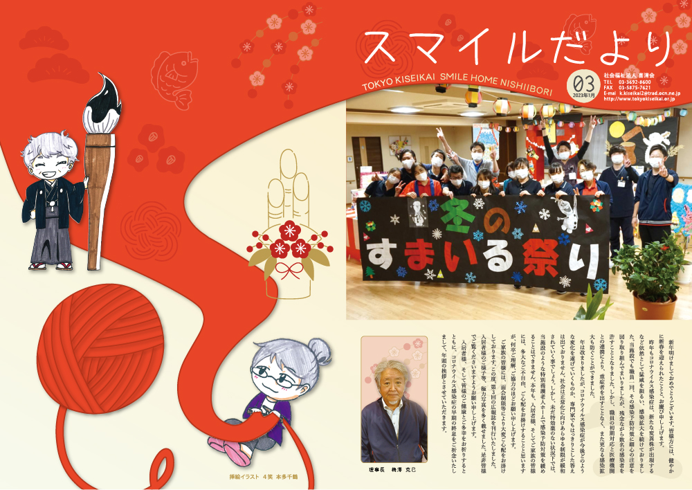 ご利用者様とそのご家族のみなさまに向けて制作したパンフレット『スマイルだより』は、施設での日々の生活がいかに充実し、温かい笑顔に満ちているかを紙面にて表現しました。特に、季節のイベントから日常のユニット活動に至るまで、利用者様が「主役」となり、「和」と「温」かさを感じられる工夫が凝らされている点が、本施設の大きな特徴と言えるでしょう。