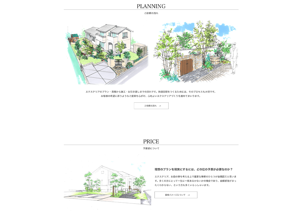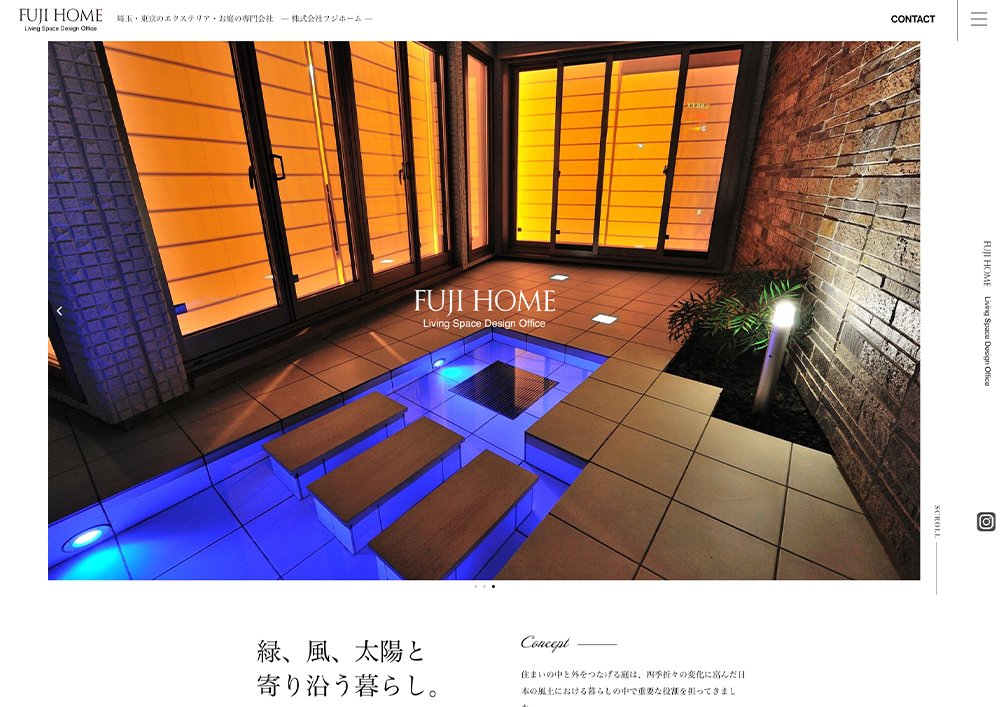 外構デザインを行う株式会社フジホーム様のHP デザインのリニューアルさせていただきました。