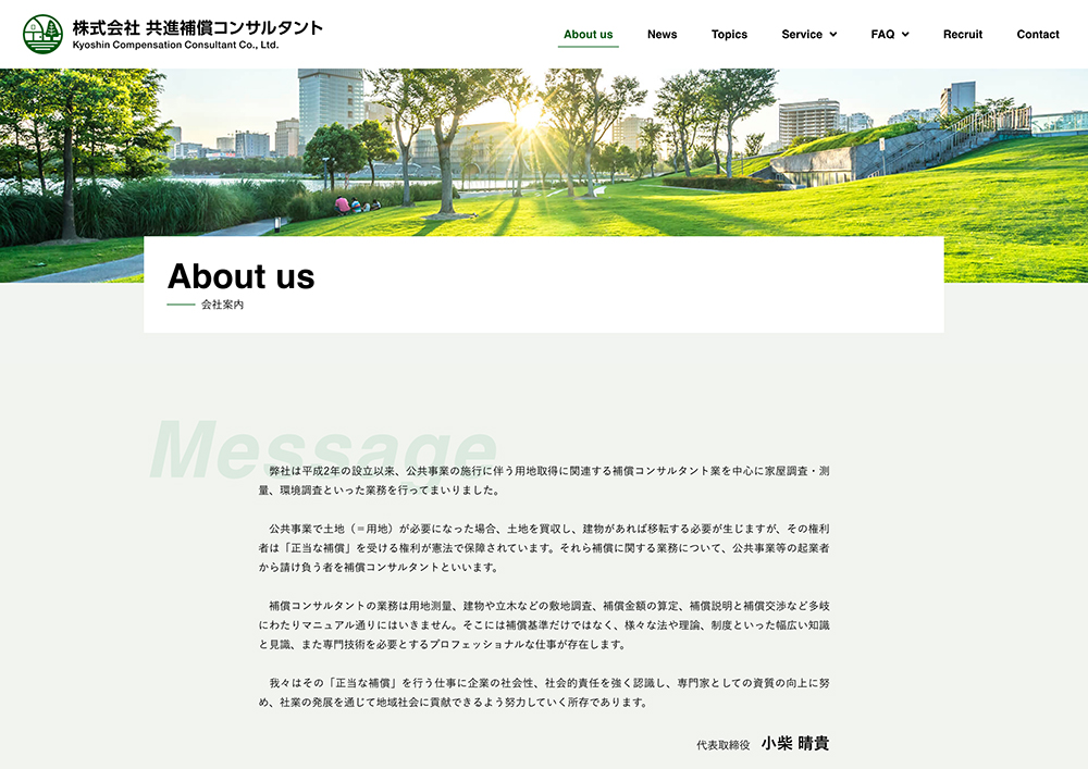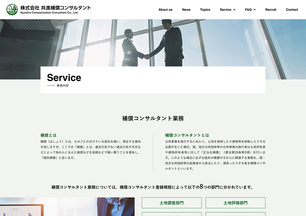 株式会社 共進補償コンサルタント様のウェブサイト(ホームページ)を制作させていただきました。